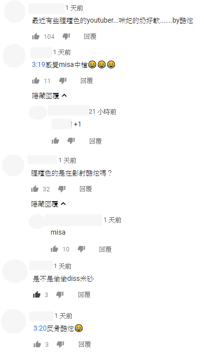 影片播出之後,因為近日酷炫在九妹的另一支影片中表示咪妃「胸很軟」,讓不少人猜測九妹是在講酷炫,不過仍有另一票人猜測九妹講的就是老濕姬「米砂」:「感覺Misa中槍」、「是不是偷偷diss米砂」。