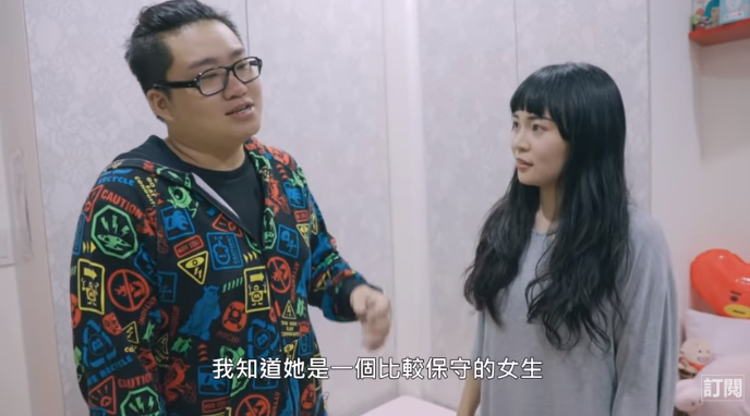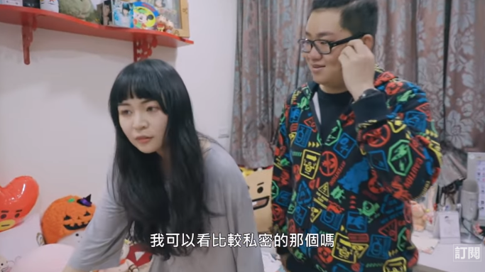 有趣的是後來九妹便表示:「我可以看比較私密的那個嗎?」,在可可酒精的詢問之下,九妹也直說:「就是一些豹紋的內衣」,不過後來他只微微開了一下衣櫃,便又關上表示︰「算了」,讓可可酒精大傻眼!不過他也解釋因為兩人認識許久,「我知道她是一個比較保守的女生,我不會硬逼迫妳要讓我看到一些比較...」,因為可可酒精比較保守,所以選擇尊重她,不會硬要拍攝大尺度的畫面。