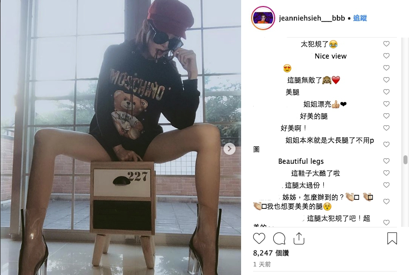 「姐姐」謝金燕日前開通IG帳號,時常會在上面分享生活近況,身材高挑、擁有一雙逆天長腿的她,也不吝嗇秀出好身材,近日她再度在IG上與大家分享一系列的美照,大開「M字腿」一雙長腿讓網友都驚呆了。