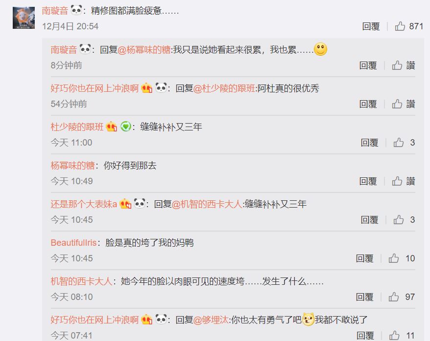 不過,楊冪近期不僅出席大小時尚活動,戲約也從沒減少,現年32歲的他被網友指出今年出席各大場合都難以忽略老化狀況,即便經過修圖臉上仍然略顯疲態,並紛紛評論「他今年的臉以肉眼可見的速度垮」、「精修圖都滿臉疲憊」可見外界比起看見漂亮的造型,更擔心楊冪每況愈下的身體狀態。