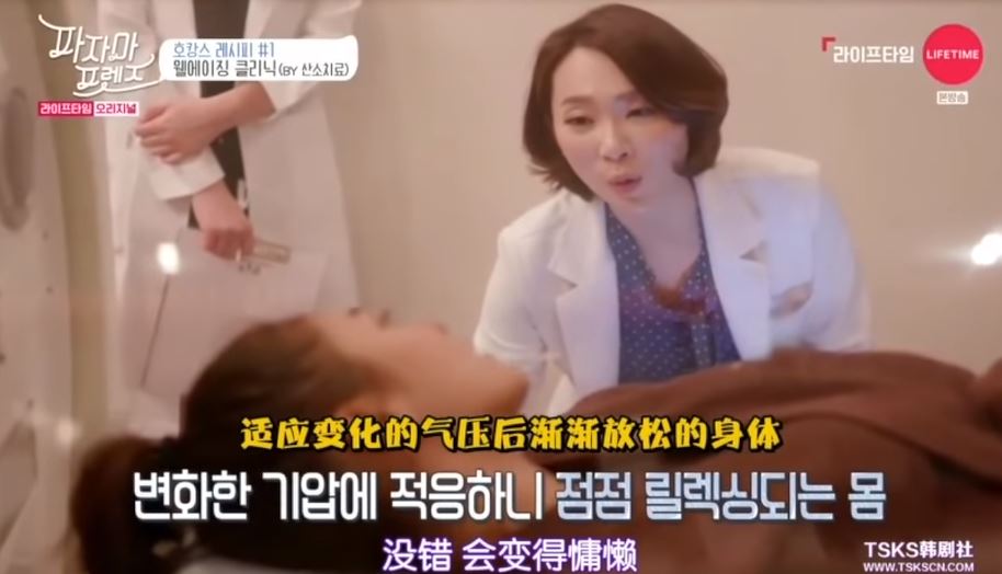 不過醫生解釋由於變壓設定所以會產生身體不適,隨後身體就會整體放鬆,雪炫雖然產生不舒服的耳鳴反應,不過隨即就進入安眠狀態。雪炫受訪時就透露治療心得並說到「管子裡充滿氧氣,只有體驗過的人才會有的慵懶感」並表示整體治療過程完全得到放鬆,不過一旁來賓發現躺進巨大儀器裡的雪炫,還是驚呼連連。