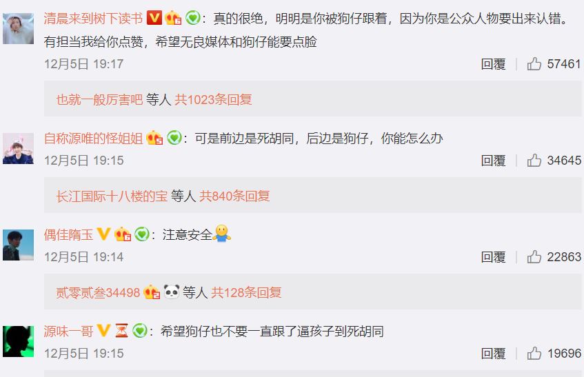不過外界普遍認為王源和魏大勛會出現翻欄杆行為,是因為發現狗仔跟拍,因此呼籲記者給予藝人私人空間,並針對兩人道歉一事評論表示「勇於承認錯誤,哥哥是我的榜樣」、「注意安全」。