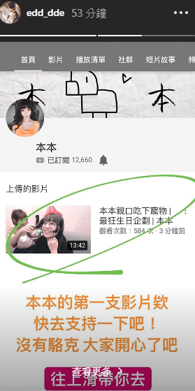 本本今年10月在IG無遇經宣布和網紅團體「在不瘋狂就等死」解除合作關係,過去和駱克一起經營的頻道「厭世克本」也不再使用,16萬粉絲付諸流水。不過本本後來便創了自己的頻道「本本」,在解約至今的兩個月期間,沒有發布任何影片便累積了一萬多人次訂閱,人氣依舊不減。今(7)日本本也在頻道中釋出第一支影片,卻沒有夥伴駱克?!