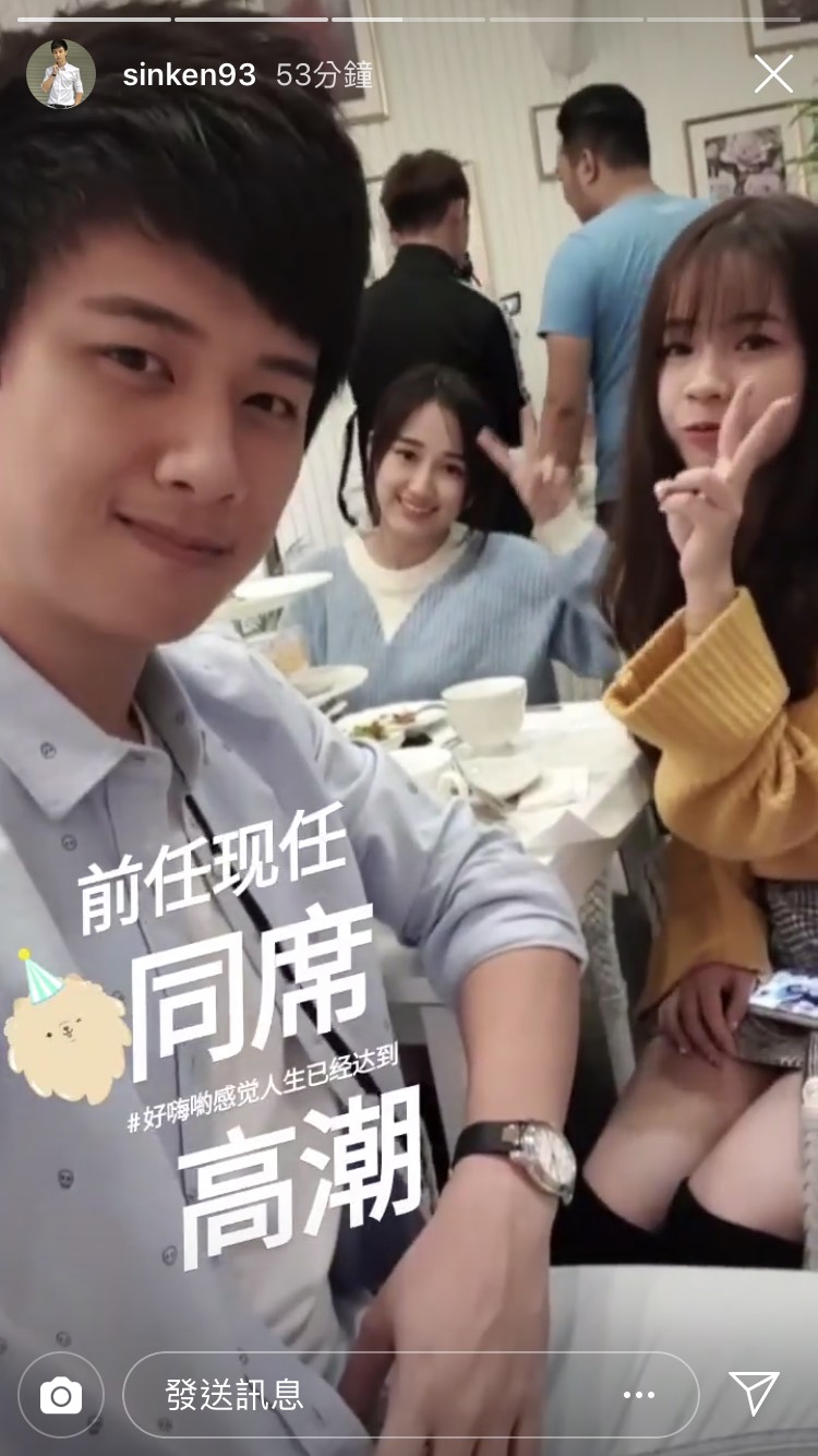 今10日肯肯在IG限時動態中PO出楊寶貝和慧慧的合照,還打上:「前任現任同席,好嗨喲感覺人生已經達到高潮」,照片中的他們疑似是在友人的生日派對,楊寶貝和慧慧也開心合照,氣氛和樂。
