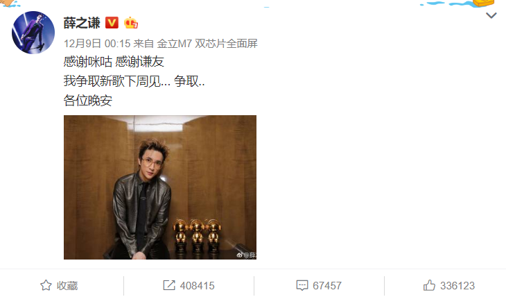 而粉絲也擔心這樣的突發事件會影響薛之謙的心情,不過薛之謙在表演結束之後,在淩晨12點還在個人微博發動態與粉絲互動,文中說:「爭取新歌下周見……爭取」,並且為粉絲們說聲「晚安」,顯然這件意外的小插曲並沒有影響他的心情太多,當時粉絲喊出令薛之謙感到不快的「雨桐」兩字,不管是出自善意或是惡意,都讓表演變得尷尬,而薛之謙與李雨桐兩人的紛爭,看似短期內也無法弭平。