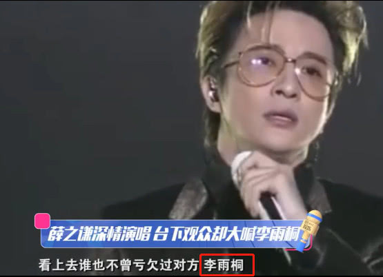 大陸歌手「薛之謙」最近遭遇的風波不斷,9日在某平臺上舉行的眾星演唱會中,薛之謙也現身舞台飆歌,現場還有他的大量粉絲為他加油打氣,但演唱會中卻發生了令人尷尬的一幕,正當薛之謙唱其中一首歌到最後一句「誰也不曾虧欠過……」時,薛之謙停頓了一下,原本要把最後「對方」唱完,但這時台下竟有粉絲接了一句「雨桐」,讓他當場直接罷唱最後兩字直接完結,當時薛之謙看起來咬牙切齒,還嘆了一大口氣。