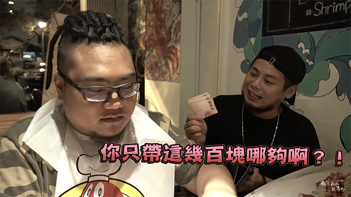 在最新的影片中,團長否希知道古拉從來沒有吃過龍蝦,便和草爺、超艾夾以及古拉一起到高檔餐廳吃波士頓大龍蝦,否希表示要請客,更霸氣的說:「這餐保證破萬」,草爺也在一旁補充說道:「他平常可能很大方,滷肉飯一次就請你吃10碗,他就是不把這些錢拿來請我們吃精緻好料的」,但是聽完古拉沒有展現出興奮的樣子,反而很擔心會被騙。