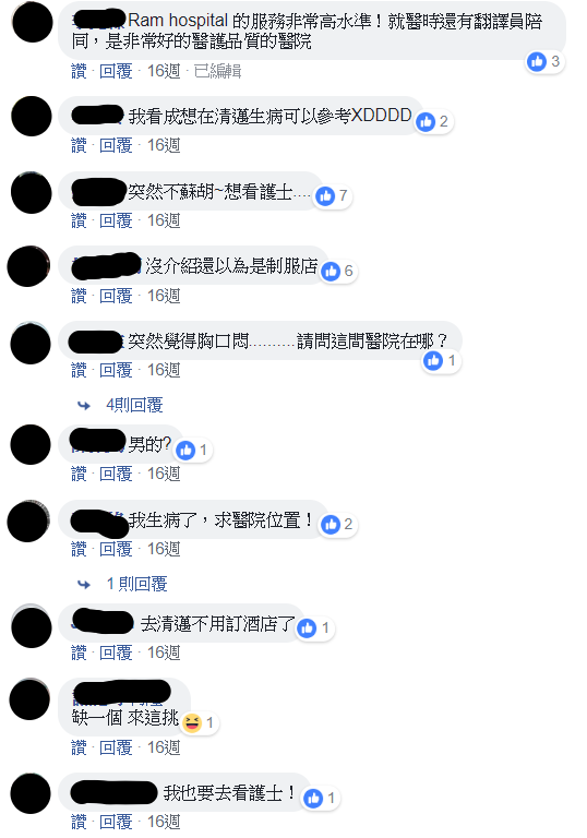 網友看到這間醫院擁有美若天仙的白衣天使後,紛紛留言想被這麼美的護士照顧,像是有網友說「泰國的女生真的都好漂亮,長相自然甜美又可愛」、「突然覺得胸口悶,請問這間醫院在哪裡」,還有網友開玩笑說帕金森氏症,症狀隨時間較緩慢出現,此外也有網友懷疑美麗的護士是不是其實是泰國人妖,該不會各個都帶把,不過其實護士們都是真正的美女呢。