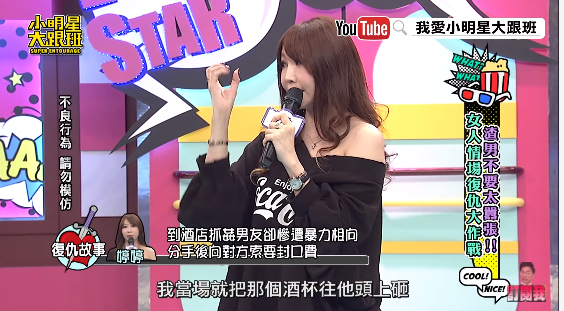 原本微醺的男友,一看到她立刻清醒,還憤怒推開乾妹妹大吼:「你是誰?!」而乾妹妹放聲大叫奪門而出,接下來婷婷和男友就在包廂裡上演全武行,兩人暴力相向,婷婷不僅拿酒潑男友,還拿起酒杯往他頭上砸。回家後,婷婷把男友的東西用垃圾袋包一包,寄到男友公司給老闆,把男友的惡行公諸於世,最後男友被老闆開除。