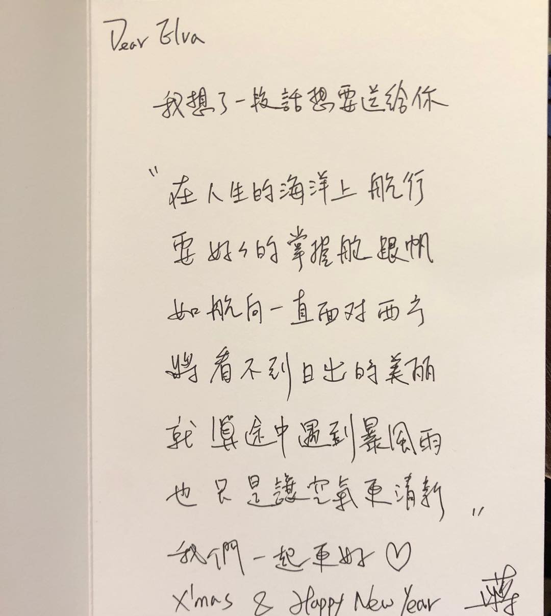 許久沒有現身的蕭亞軒終於又回來啦!消失將近一年的他,許多粉絲都相當擔心,而她今天也在IG曬出好友親手寫給她的卡片,內容寫著:「Dear Elva,我有一段話想要送給你,『人生的海洋上航行,要好好的掌握舵跟帆,如航向一直面對西方,將看不到日出的美麗,就算途中遇到暴風雨,也只是讓空氣更清新。』更鼓勵她:「我們一起更好!」來自有人的加油打氣相當暖心,也讓粉絲們相當欣慰。
