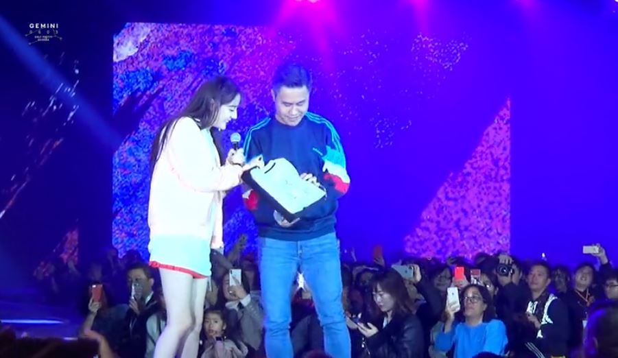活動當晚迪麗熱巴不僅隨著動感音樂跳出場,現場也準備「扔禮物」環節,大方送出品牌服飾打廣告,同時也為台下粉絲謀福利。扔禮物過程卻意外展現迪麗熱巴體貼的一面,眼看台下粉絲為了搶到禮物而不停往前擠,迪麗熱巴竟表示「你們已經很幸運了,在裡面能清楚的看到我,所以我要扔的遠一點」充分照顧到台下所有粉絲,就有粉絲捕捉到,每當丟出衣服時,迪麗熱巴的裙襬就會隨之飛起,果真讓前排觀眾眼睛吃冰淇淋。