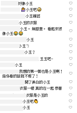 網友紛紛留言:「好像小玉」、「小玉確認」、「想的第一個也是小玉」、「開了美白的小玉」,也有眼尖的網友發現男生身上的衣服跟小玉之前po過的疑似就是同一件:「小玉的衣服」,「衣服一樣,真的在一起,恭喜」、「衣服是小玉的」。