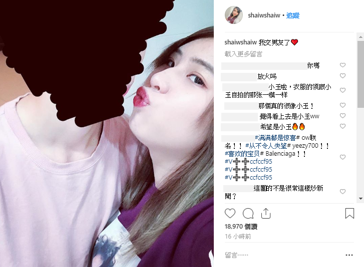 笑笑昨日凌晨在ig中po文:「我交男朋友了」,更附上自己與男方的親嘴照,尤其兩人靠超近,超級親暱的模樣讓許多粉絲相當激動。不過因為笑笑將男生的臉部塗黑,留下懸念,也使得網友紛紛留言猜測男方身份!