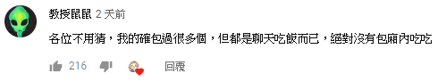 事實上烏鴉說出諸多線索之後,便有許多網友猜測對方就是教授鼠鼠,而教授鼠鼠也在下方親自回應:「各位不用猜,我的確包過很多個,但都是聊天吃飯而已,絕對沒有包廂內吃吃」,表示確實就是自己!