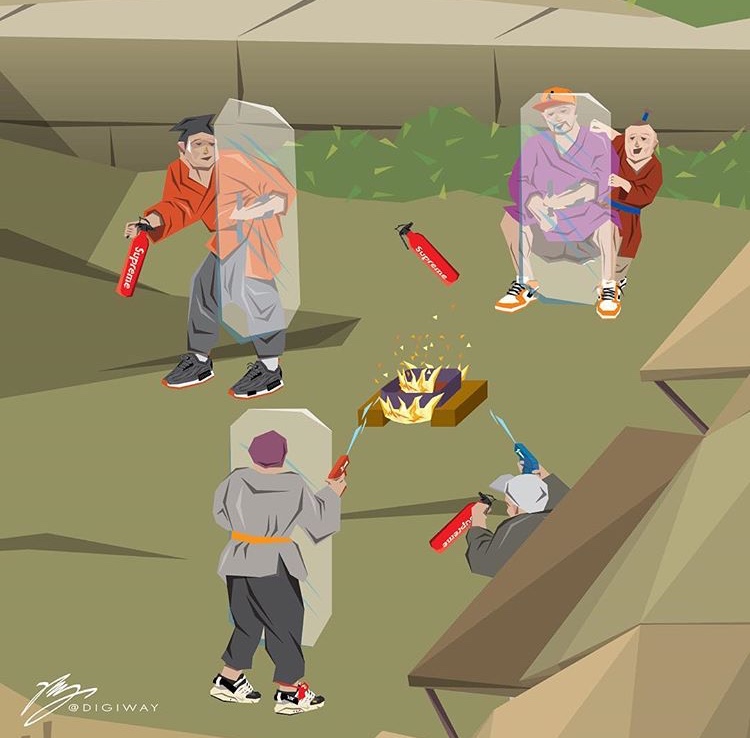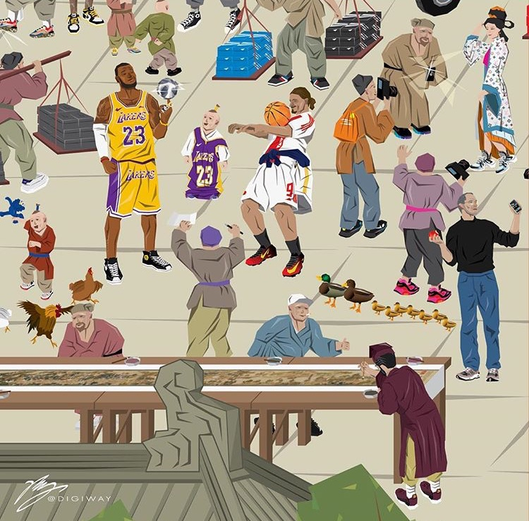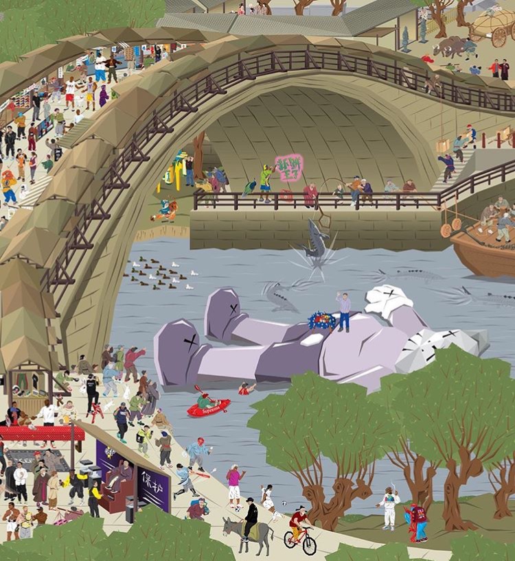 當古代人穿 Supreme?香港藝術家打造《清明上河圖》潮流版本 各種潮牌、名人都出現啦!