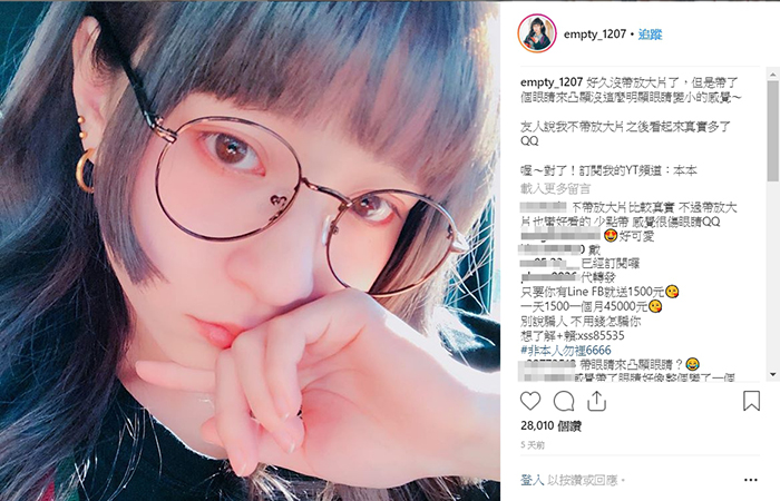 之後她更發文:「好久沒戴放大片了,但是帶了個眼鏡來凸顯沒這麼明顯眼睛變小的感覺~友人說我不帶放大片之後看起來真實多了QQ」,的確本本沒有戴瞳孔放大片後,其實變得更真實了!而且儘管沒戴美瞳,本本的眼睛還是一樣很大呀!根本還是非常動人的雙眼。