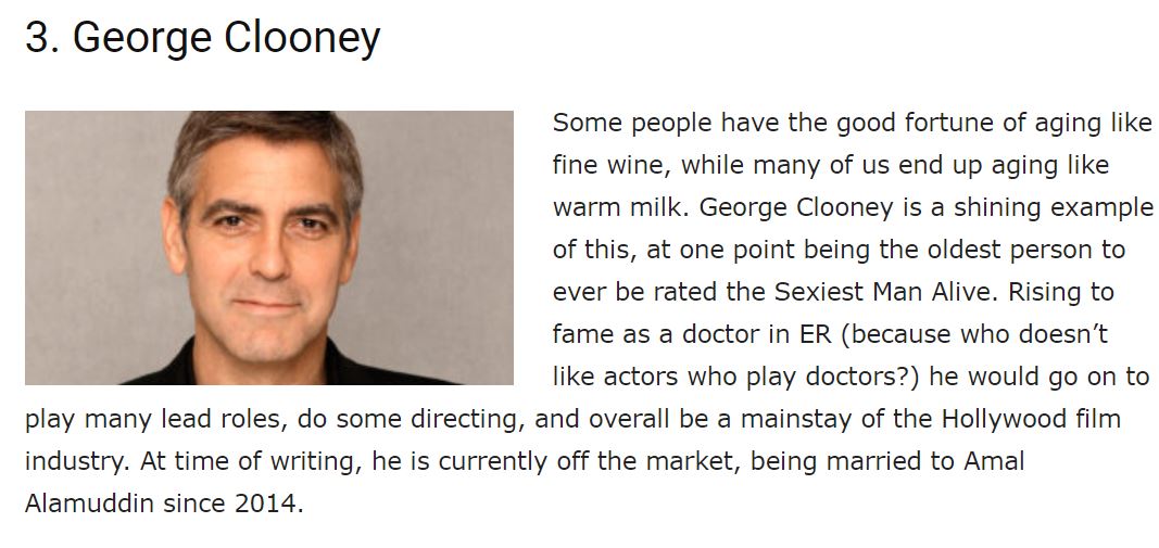 此次榜單中東亞也是韓星唯一入選的田柾國名列第9名,《Gazette Review》更解釋入選原因說到「擁有著出眾的外貌外,還擁有歌唱、舞蹈、Rap、料理等多樣的才能,因此顯得更加耀眼。」而榜單中前三名由高到低依序為「美國隊長」克里斯伊凡拿下,其次為印度演員巴倫索布蒂,以及素有「好萊塢黃金單身漢」之稱的喬治克隆尼。
