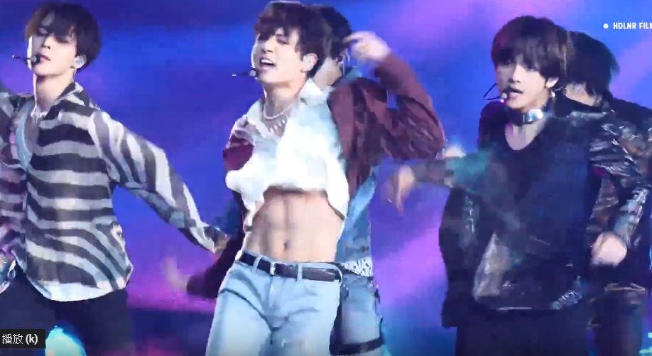 而勤於健身的田柾國更擁有完美的腹肌線條,卻曾放話2025年才肯讓外界看到他的身材,不過就在今年防彈少年團赴美參與頒獎典禮「Billboard Music Awards」時,團體演出新歌《FAKE LOVE》,田柾國在舞台上掀起上衣大方露出完美腹肌,當時引起現場一陣鼓譟。