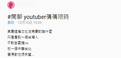 放「中華台北」旗幟?美妝YouTuber「蒨蒨」遭PO文公審 親上火線回應!
