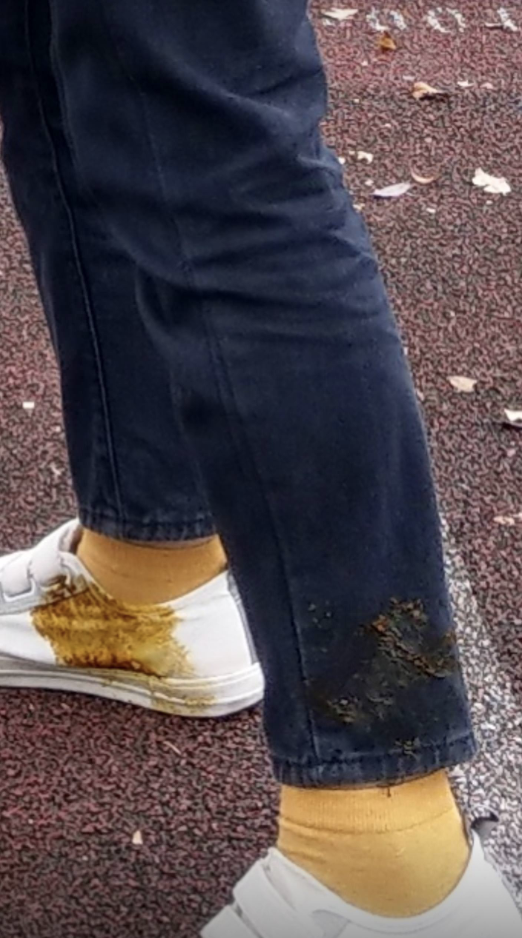 該名女網友和家人到新竹內灣老街踏青,路途經過一間漂亮的國小,她爸便和她說:「妳坐在操場上應該很好看」,當下女網友不以為意,就乖乖的坐在地板給爸爸拍照,除了盤腿坐之外,她還變換不同的姿勢,甚至在地板上打滾,只為了拍出網美照,結果她完全沒發現旁邊有一坨狗大便,當她在地上打滾時,褲子和白色鞋子上都沾滿了大便,讓她渾身屎臭味。