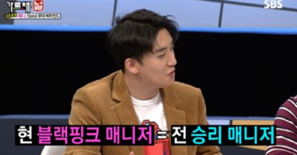 當天在節目中,播出了BLACKPINK成員Jennie以SOLO出道的故事,當時同隊的好友JISOO還為工作人員們送上貼有寫著「發光的Jennie就拜託囉~」的維他命飲料,而其他來賓坐在攝影棚內目擊了整個過程,有來賓問JISOO說:「這影片是誰拍的? 」,JISOO則立刻回答:「是經紀人拍攝的」,此時坐在一旁的勝利突然插話說:「BLACKPINK的經紀人其實是我的......前經紀人,他跟了我3年,有一天突然說實在是幹不下去了,沒想到一轉就去了BLACKPINK那邊 」,全場聽完當場哈哈大笑。