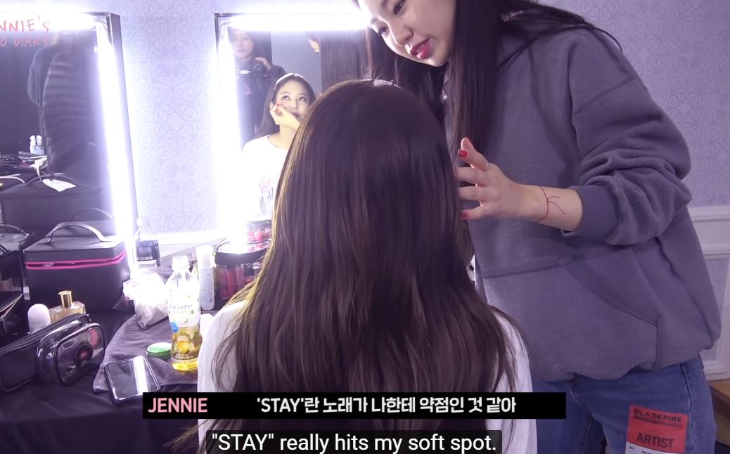 歌曲《Stay》是一首十分傷感的失戀情歌,節目中,Jennie結束演出回到後台時,她便透露其實日前在日本的演唱會上,也因為唱起這首歌而忍不住落淚。Jennie也在節目中解釋「(《Stay》)觸碰我內心最軟的一塊」,接著更語出驚人說到「你越是投入製作這首歌就會對這首歌感觸更深」。