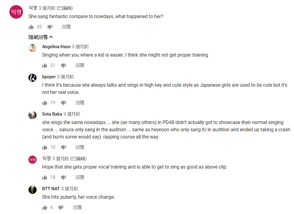 不過更多網友對比宮脇咲良出道後的歌喉,認為宮脇咲良的嗓子已經損壞,並猜測原因表示「可能日本偶像時常高音演唱的特性,所以這其實不是她真正的嗓音」、「可能已經變聲卻沒有得到好的歌唱訓練」,不過另有粉絲透露宮脇咲良在進入AKB之前嗓子就已經受損「後來再去面試什麼劇團都失敗了,所以才參加HKT的當偶像的」。