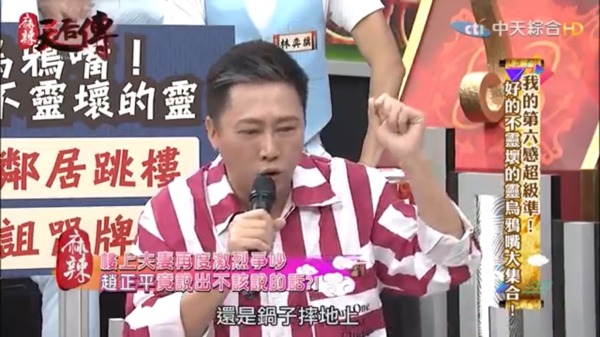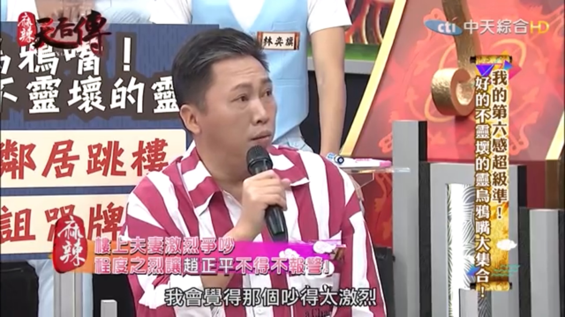 「趙正平」在節目中透露,當時樓上住了一對夫妻,每天都在吵架、打架、摔東西,多次造成極大聲響還引來警察關切,久而久之他已經習慣,只要外出工作沒聽到就無所謂。某次趙正平邀請朋友到家裡吃火鍋,樓上夫妻又傳來摔玻璃、鍋子,甚至是人去撞牆的聲音,還伴隨著女生尖叫喊救命的聲音,因為友人第一次聽見覺得有些緊張,習以為常的趙正平便隨口說了一句:「沒關係啦,我也習慣了,哪天那個女的怎麼死的都不知道。」