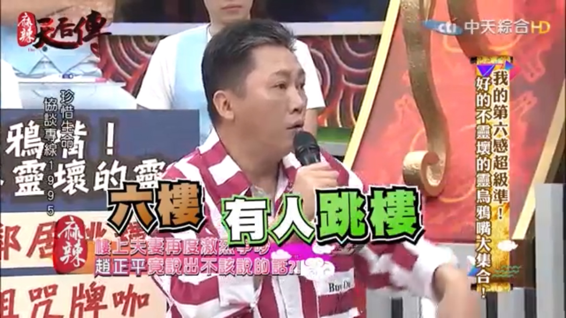過了一個星期後,趙正平每天收工回家,發現家裡樓下圍了大批警察,正當要上樓時還被警察攔下來詢問,他才知道原來是那對夫妻出事了,妻子從6樓跳了下來自殺,嚇得趙正平驚問:「跳下來?她死了嗎?」警察才解釋女子很幸運的摔到遮雨棚,雖然生命沒有危險,但摔斷了腿,目前已經送往醫院急救,讓原本擔心烏鴉嘴成真的他鬆了一口氣。他心想:「如果今天她真的死了,晚上應該會來找我吧!」房東事後到場,也氣得大罵6樓的那對夫妻講不聽,而且沒錢繳房租,想趕也趕不走。事後趙正平也表示自己後來也搬離那棟大樓,深怕未來還會發生更嚴重的事故。