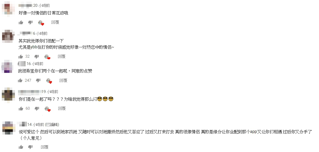 影片結束後,有許多網友都覺得祥祥跟楊寶貝的互動,有些曖昧並留言:「好像一對情侶的日常互動哦」、「其實我覺得你們很配 尤其是ybb在打你的時候感覺好像一對熱戀中的情侶~」、尤其還有網友說:「我很希望你們兩個在一呢,同意的點讚」,祥祥還有點讚,當然也有很多網友大喊好閃:「你們是在一起了嗎???為啥我覺得那麼閃」、還有人細數兩人的緣分:「說可愛這個 然後可以到她家找她 又隨時可以對她撒嬌然後他又答應了 過後又打來打去 真的很像情侶 真的是緣分 讓你業配到那個app又讓你相遇過後你又分手了(個人意見)」
