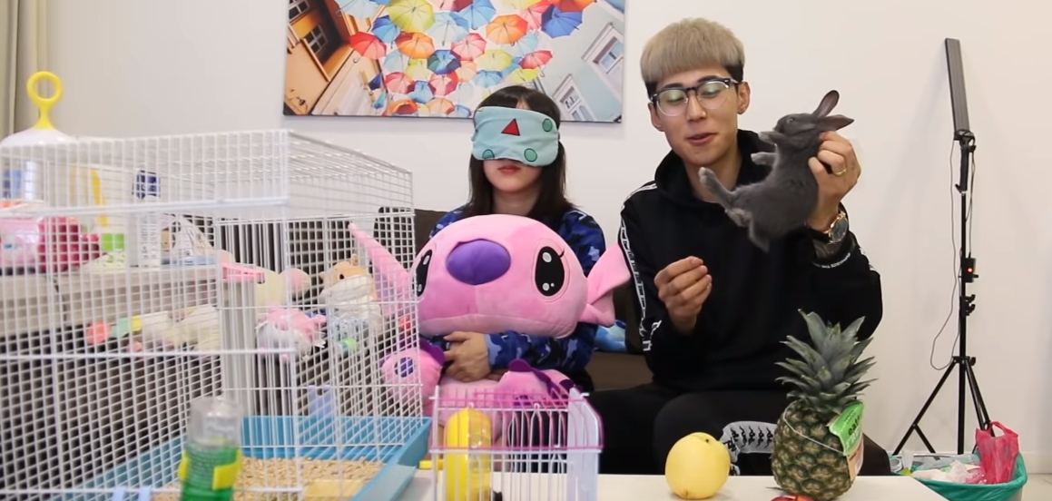 影片開始,祥祥就策劃一個要惡整楊寶貝的計畫,雖然他並沒有說明要怎麼惡整她,只見他在賣場挑了許多水果,邊挑邊嗅味道,看起來格外認真,最後還買了寵物兔跟寵物鼠,總共花了三百多馬幣,就準備前往楊寶貝的家,感覺這次惡整計畫有些大手筆~