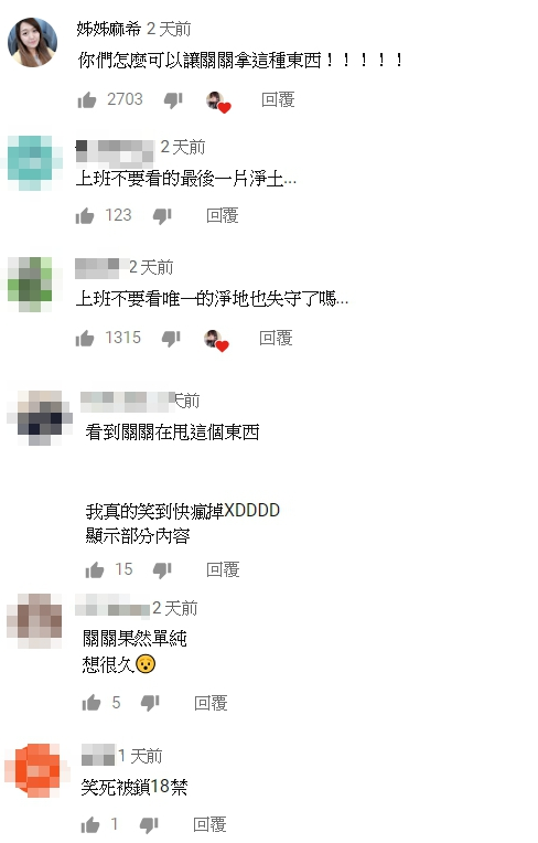 此影片發布後,也引來許多網友熱烈討論:「上班不要看的最後一片淨土...」、「上班不要看唯一的境地也失守了嗎...」、「看到關關在甩這個東西 我真的笑到快瘋掉XDDDD」、「關關果然單純 想很久」、「笑死被鎖18禁」。