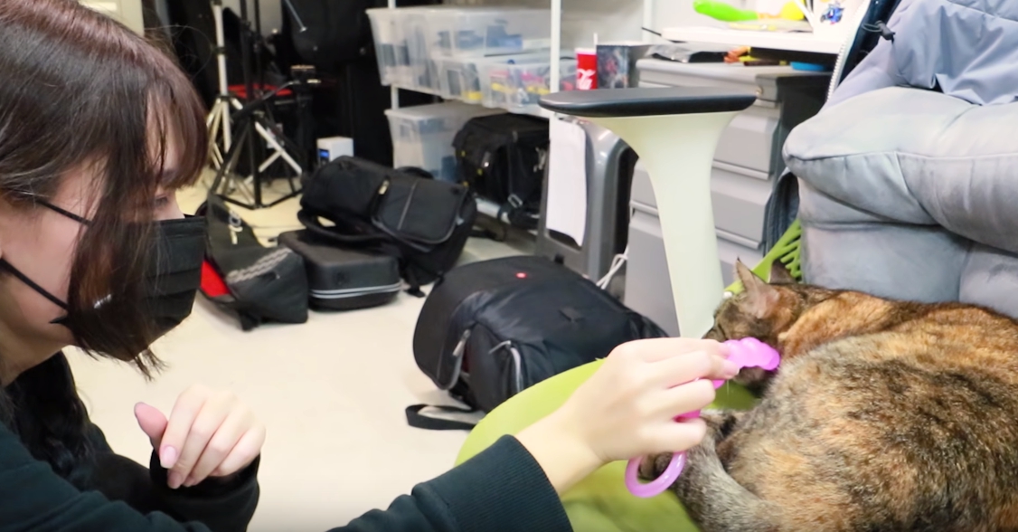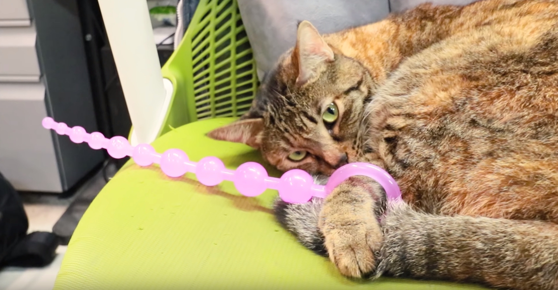 其他上班成員也有陸續歪樓解釋,到底這個情趣用品是如何用法,但都瘋狂爆笑,老司機的麻希更笑到崩潰地說:「你竟然讓關關拿這種東西!」,關關最後覺得:「我有預感這部影片可能會被Ban掉」,影片結束前,關關還拿給老闆呱吉分析,最後意外發現貓咪寶寶意外適合這個用具,關關就說:「這根本 逗貓棒阿 來 送給你」。