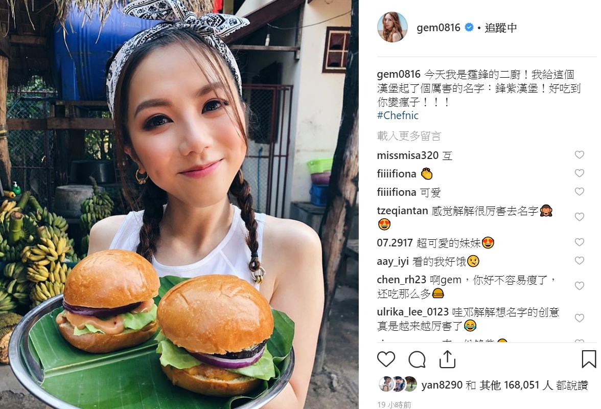 此外,鄧紫棋也分享在節目中擔任謝霆鋒的二廚,當天親手下廚的料理,照片中,鄧紫棋手上的盤子裝了兩個漢堡,他表示給漢堡取了「厲害的名字:鋒紫漢堡!」,還解釋到「好吃到你變瘋子」,似乎平衡了稍早可怕蟲蟲大餐的陰影。