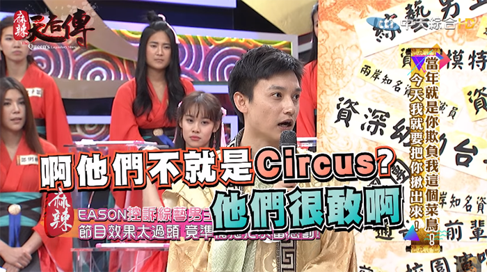 雖然他們一向以「敢」著稱,但這樣的做法卻讓Eason覺得自己有被羞辱的感覺,「好像說你們怎麼弄也不會死那種感覺」,但他們也只好硬著頭皮上,甚至回去後還引發過敏。事後隔了1、2年遇到同個製作單位,才得知其實當時工作人員準備的是正常的水,是該名男主持人在錄影前說:「啊他們不就是Circus?他們很敢啊!」直說他們也沒長得特別帥,無法靠臉,所以要求把他們的水換成拖把水。