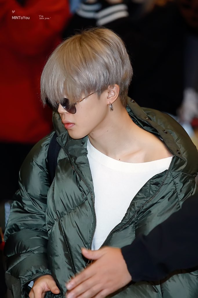 21日,防彈少年團因為海外行程而抵達金浦國際機場準備出國,Jimin當天身穿黑色羽絨衣加上白色毛衣,看似輕鬆的穿著但是仔細一瞧,裡頭的白色毛衣是香奈兒前陣子推出的寬肩女裝,但是穿在Jimin身上竟也毫無違和感,反而讓Jimin露出白皙的「性感鎖骨」,畫面實在是太撩人,網友看到後紛紛表示,「我要停止呼吸了」、「為什麼可以把衣服穿得這麼性感ㅠㅠ」、「朴智旻太致命了!」,一件T恤意外引起網友的熱烈討論。