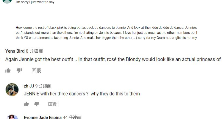 不過此次演出卻仍引發部分爭議,有眼尖的網友抓包,團體演出時Jennie的站位和服裝,讓其餘三位成員看起來和背後舞者融為一體,就不少網友評論表示「Lisa、Jisoo、Rose變成Jennie的舞者了」、「Jennie的衣服看起來比其他人亮眼…我也喜歡Jennie不過我覺得YG娛樂是不是比較喜歡她」。
