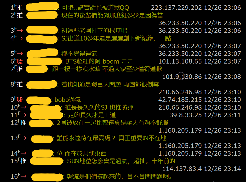 事情傳到台灣,也有許多網友表達自己的看法,有網友覺得節目只是講出實話,但是大部分的網友都認為這樣的比較是不適當的,表示「現在的後輩們能夠那紅,是因為當初這些老團打下的根基吧」、「SJ出道十年還是屢屢創下紀錄,一點都不覺得過氣」、「兩團被放在一起比較來真讓人有夠不舒服」、「韓流是他們撐起來的」,大多的粉絲還是相當肯定Super Junior的地位,也證明時間並不會影響他們生涯的成就。
