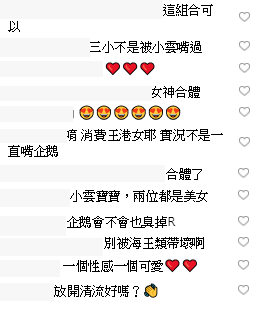而影片上傳之後,立刻引起熱議,許多粉絲紛紛留言:「這組合可以」、「女神合體」、「好棒兩個同台」、「同台同台」、「小雲寶寶,兩位都是美女」、「兩個都女神」。不過因為小雲寶寶過去曾身陷負面新聞,也有許多網友留言希望企鵝妹不要跟小雲寶寶合體,更有粉絲直說:「不是被小雲嘴過」、「消費王港女耶 實況不是一直嘴企鵝」。