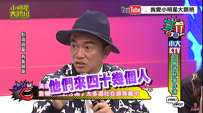 只是沒料到,對方一找竟找來40多個人,來勢洶洶!吳宗憲沒在怕,對自己的酒量相當有自信,但對方竟拿出一瓶威士忌和白蘭地,加上當時助理沒有出面幫他擋酒,他只能硬著頭皮上,心想「我只要這趕快喝完就可以走了」。