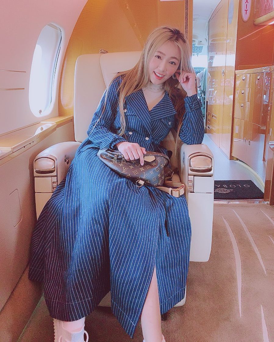 28日下午收工後,丫頭開心表示,已經請好假要飛出國跨年,還說這是她第一次不是因為工作飛去跨年,「覺得開心」。不久後,丫頭曬出自己在機位上的美照,她穿著一身藍白色條紋的連身裙,一頭金褐色的飄逸長髮披在肩上,露出甜甜的笑容。不過更吸引網友注意的是,丫頭所在的機艙看起來非常豪華,不少人猜測是「私人飛機」事後丫頭也親自回覆表示:「小飛機而已啦!」
