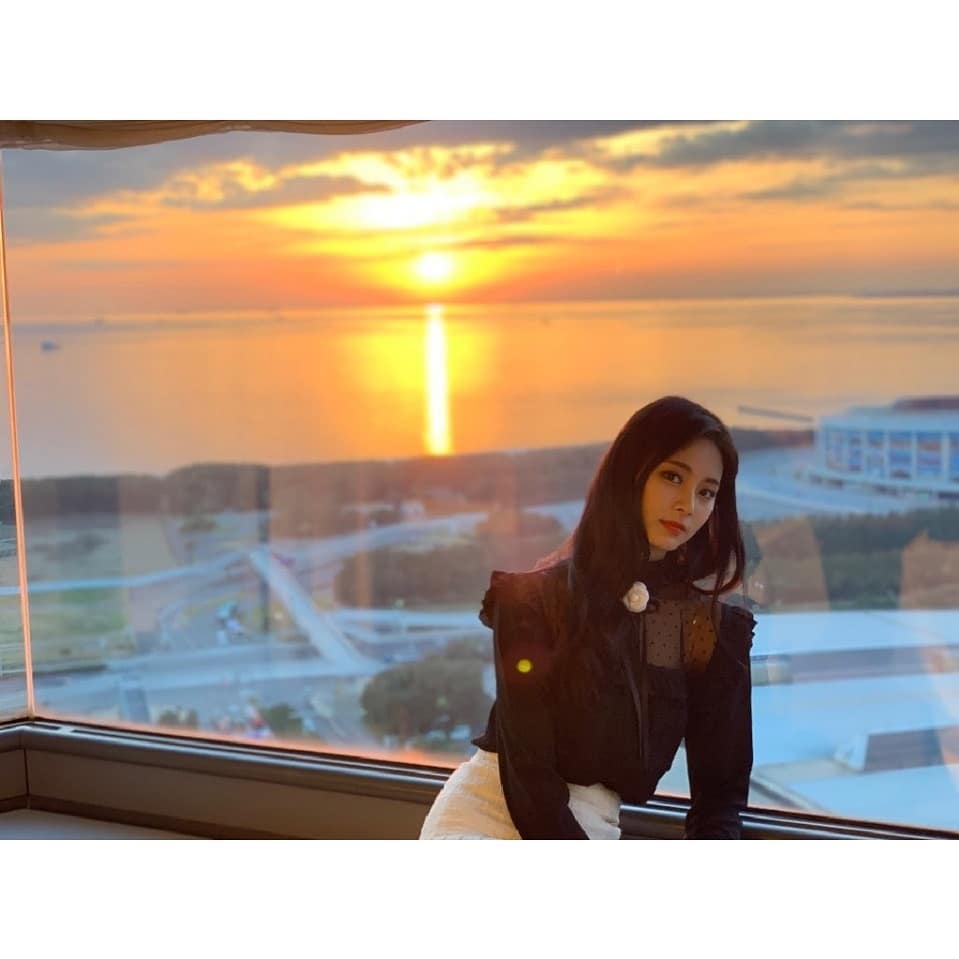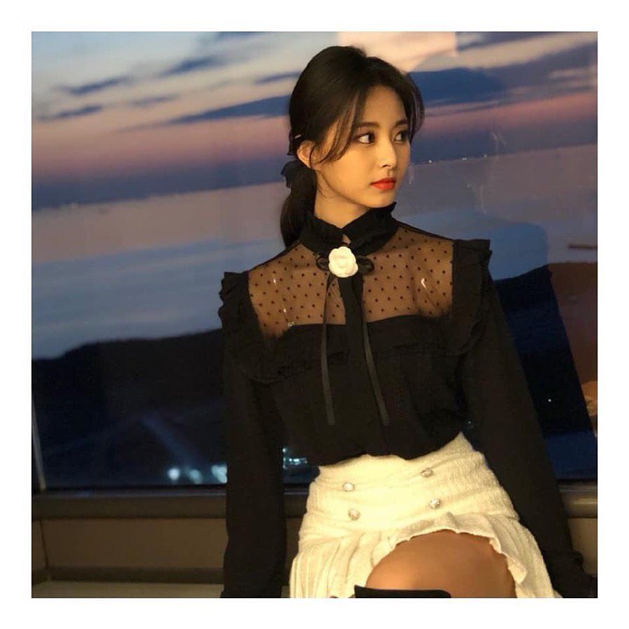 照片裡子瑜的穿搭更是吸睛的焦點,她穿著黑色的上衣,微微透露出胸前的膚色,還可愛的在領口繫上一朵小白花,此外下半身更是不得馬虎,搭配上白色短裙大膽露出細白長腿,腳穿的長靴更顯得美人的氣質,而子瑜的眼神更加厲害,有時用清純的眼神直視鏡頭,有時有刻意不朝鏡頭拍攝,子瑜一人坐在落地窗前,擺出了各種迷人表情,背景的夕陽直接成為配角,看完照片後讓大群粉絲再度暴動,大喊「好可愛!」、「好美!」、「我又戀愛了!」。