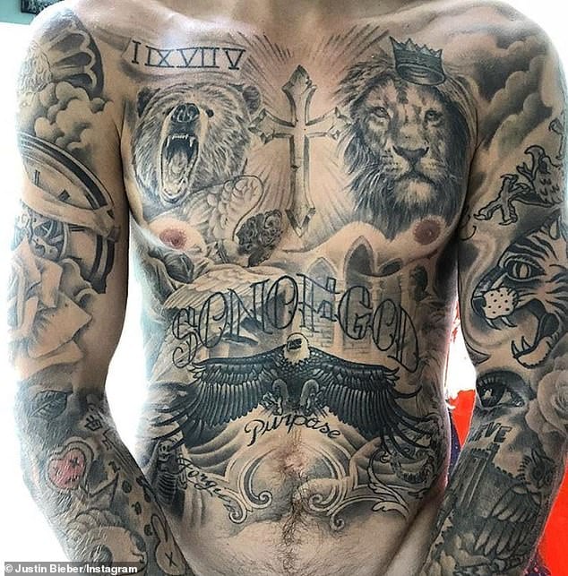 ▼小賈斯汀近年來的紋身越刺越滿,現在他的上半身幾乎已經被刺青圖案填滿。