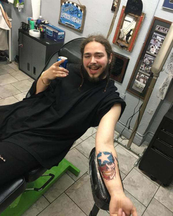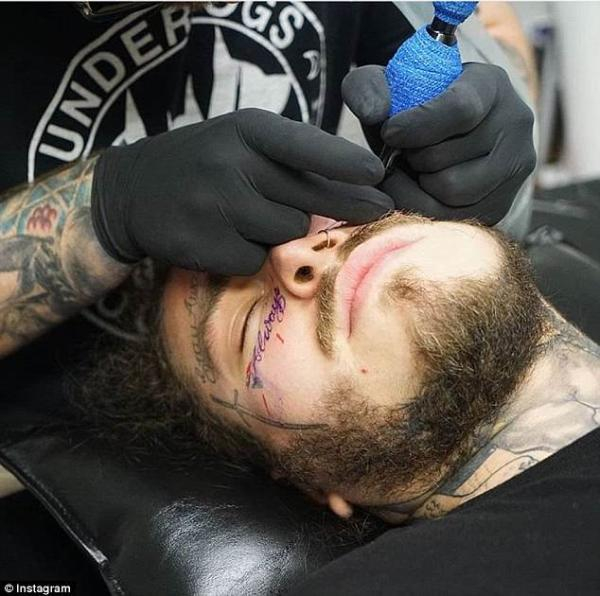 ▼說到臉部刺青,就不能不令人想起跟小賈斯汀相當要好的 23 歲美國饒舌歌手波茲·馬龍(Post Malone),他在訪談中曾表示正是小賈斯汀身上的刺青啟發了他,波茲·馬龍才因此踏上了瘋狂刺青之途。原本在臉上就有 5 個紋身圖案的波茲·馬龍,在去年更一次在兩眼下方分別刺上了第 6 個和第 7 個刺青,大膽的「眼皮下刺青」讓許多粉絲都咋舌,或許就是波茲·馬龍的臉部刺青狂魔行為帶動了小賈斯汀想要有新的刺青部位念頭。