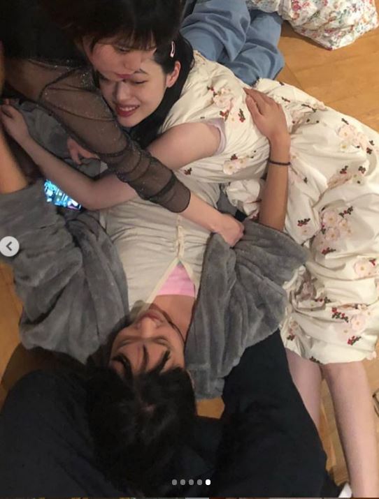 此外,雪莉多則貼文中還不斷出現和朋友肢體接觸親密的畫面,一開始是一群人抱著躺在地上,爾後只剩雪莉和另一位朋友一下子躺在腹部,另一回雪莉又看著她舔舌頭,最令外界驚訝的,還有朋友數次躺在雪莉胸上,兩人甚至十指緊扣,讓網友看了直呼「真是徹底放飛自我了」、「姑娘還好嗎」。