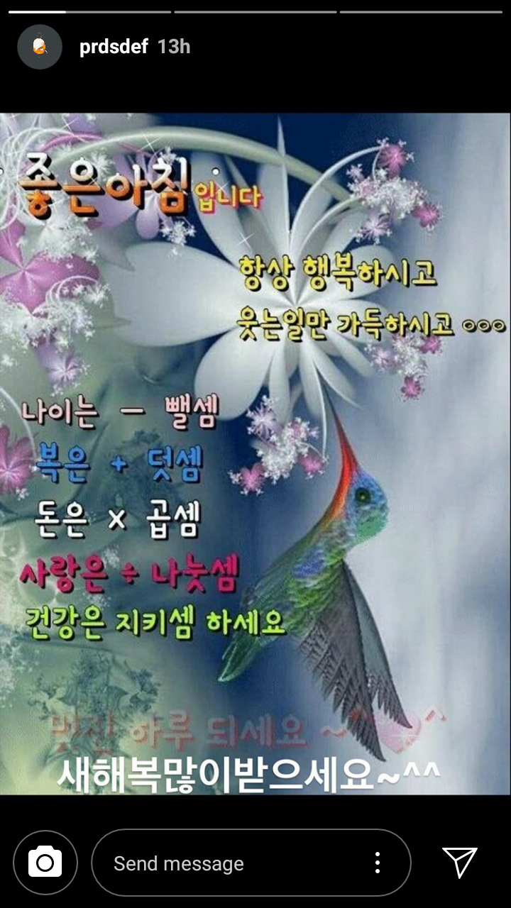 日前剛迎來元旦新年,隊長JB也貼心在個人Instagram中連發三個限時動態祝福大家新年快樂,不過背景照片卻都是家中長輩會使用的「長輩圖」。三張背景圖分別使用相當喜氣的鳥、花和小豬撲滿,甚至印有賀詞,內容則寫上一篇篇打油詩或是短語,像是「幸福常伴,笑容常伴」、「健康是一個人能給他人最棒的禮物」、「好吃的多吃,想做的都做」。