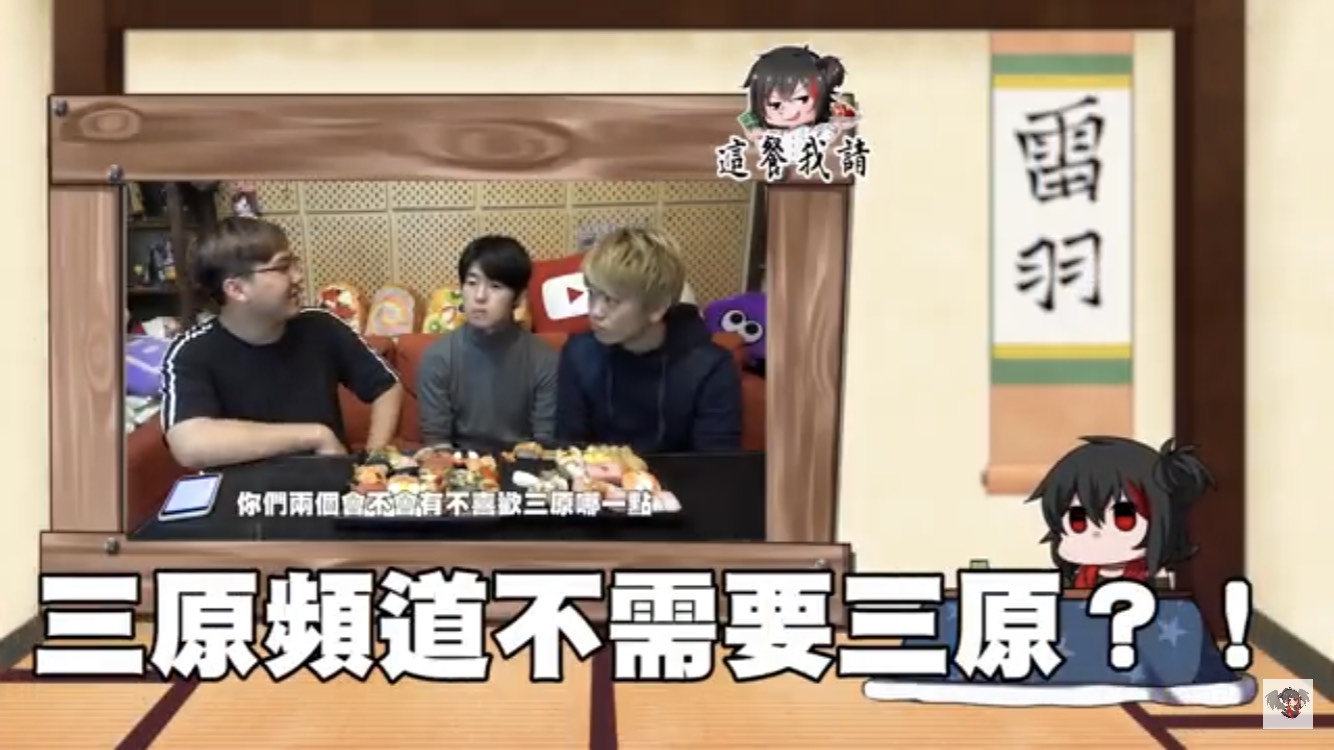 「三原JAPAN Sanyuan_JAPAN」的頻道由日籍旅台的三原慧悟所創立,起先由他一人主持頻道,多以介紹台日文化差異為主,後期陸續增加日本團員Jun醬(變態先生)、Tommy,現階段企劃多為兩千元、大胃王、挑戰企劃,更創立偶像頻道發布多首MV,主頻道目前也即將突破百萬訂閱,三位在台灣的人氣也不低,擁有不少死忠粉絲。近日,兩位團員Jun醬、Tommy作客黑羽的這餐我請的企劃,分享許多團隊間的故事,更爆料出三原私底下的個性...
