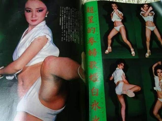 另外,還有網友翻出白冰冰在日本發展時,替電影《空手道大戰》拍的宣傳照片。只見他上半身穿著短版露肚裝,下半身僅穿著一條白色的三角褲,還帥氣擺出各種打拳、踢腿的動作,看起來氣勢十足。