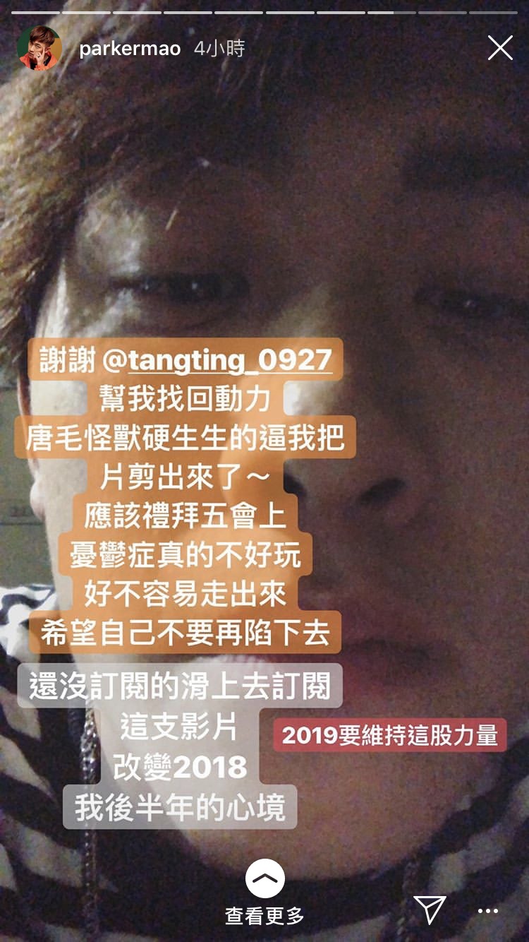 巴巴烙近日在IG限時動態中宣傳頻道「唐毛怪獸」,並特別謝謝同為團員的唐婷婷,表示因為對方才找回動力,「唐毛怪獸應生生的把我逼我把片剪出來了」,他也透露自己沒動力的原因:「憂鬱症真的不好玩,好不容易走出來,希望自己不要在陷下去」。
