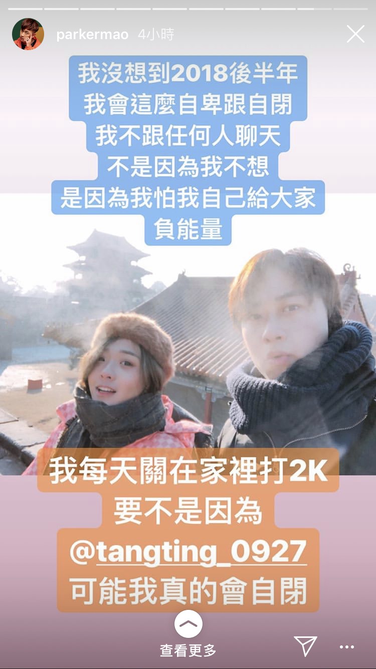 巴巴烙解釋其實2018下半年過得很不開心,「我沒想到2018後半年我會這麼自卑跟自閉」,甚至因為不想帶給別人負能量而不跟任何人說話,每天關在家中,「要不是因為@tangting_0927,可能我真的會自閉」!